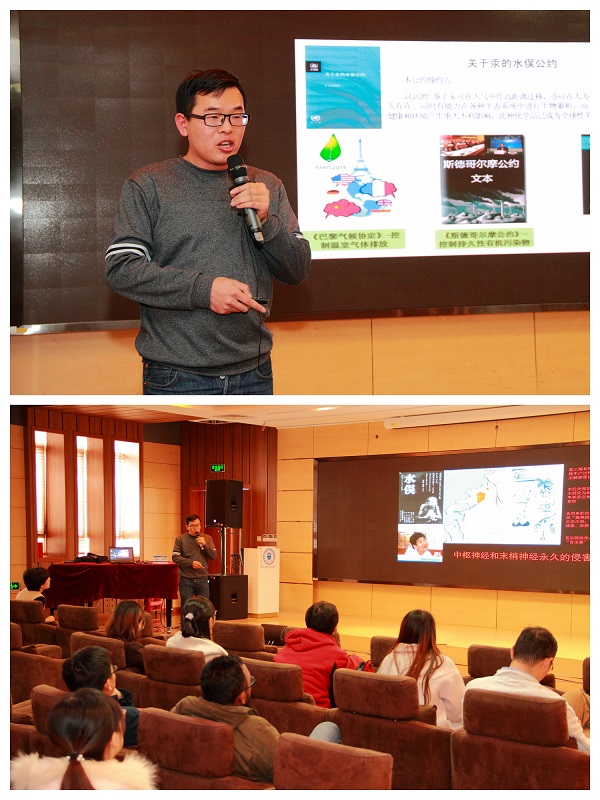 孙若愚从汞中毒的典型案例出发,全方位地介绍了《汞的水俣公约》的签署背景、我国汞污染的概况以及预期履行汞减排所应采取的措施,并从稳定汞同位素的角度阐述和剖析了该技术在评价《汞的水俣公约》执行效力方面的潜在应用。他还结合1953年日本九州熊本县水俣镇发生的“水俣病”事件,详细地讲述了无机汞转化为剧毒甲基汞主要机制、甲基汞在食物链传递过程中的富集效应以及人类是如何通过食用鱼体造成汞中毒的。接着,孙老师介绍了《汞的水俣公约》形成的来龙去脉,认为中国作为负责任的大国目前面临着汞减排与履约的双重压力。