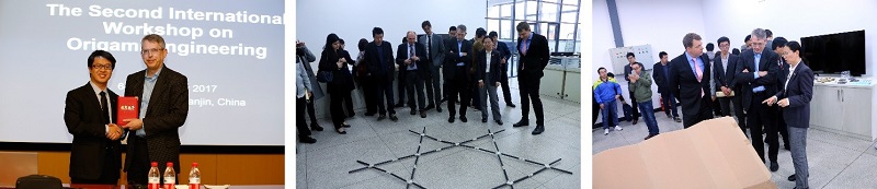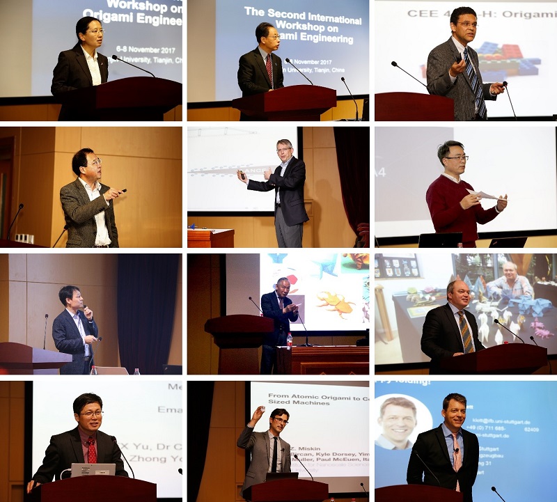 本站讯(通讯员 马家耀 杨富富)2017年11月6日至11月8日,第二届国际折纸工程研讨会在天津大学北洋园校区第37教学楼宏远报告厅召开。来自中国、美国、英国、德国、澳大利亚、日本和韩国的11位国际折纸工程领域专家分别从艺术、数学、物理、力学、机构学、机械工程、土木工程、超材料等方面的折纸研究进行了精彩的专题报告。本次研讨会吸引了来自清华大学、上海交通大学、西安交通大学等国内外30个科研单位约150名相关研究机构人员的参与和研讨,从而推动这一国际新兴学科的前沿发展。