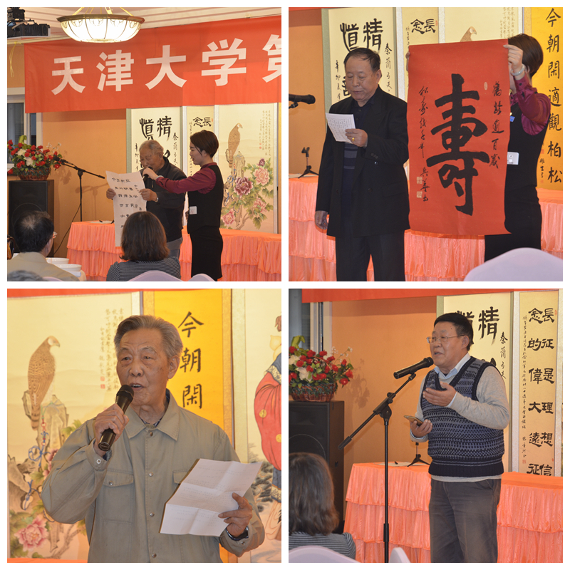 祝寿会上,年满七十周岁的老同志代表、出版社退休党支部书记杨凤和,退休教职工协会兴趣组组长代表、国画组组长魏彩雯,学生为老服务志愿协会代表龙弘泽分别进行了发言。退休教职工协会合唱团和北洋诗社的老同志们还带来了精心准备的节目,为老同志们贺寿,为党的十九大献礼。