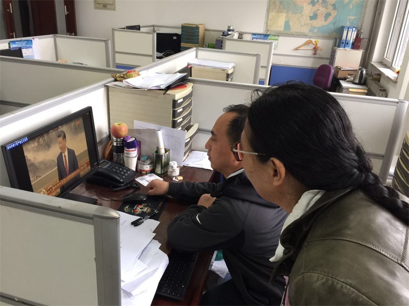 化工学院学生和办公室老师收看十九届中共中央政治局常委与中外记者见面会