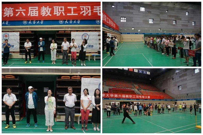本站讯 (通讯员 李辉) 9月23日——24日,由校工会、体育部、场馆中心和天津大学教职工羽毛球协会共同举办的天津大学第六届教职工羽毛球大赛在卫津路校区体育馆举办。来自30个单位的近200名选手参加比赛。校工会常务副主席马桂秋,体育部党总支书记、体育部主任韩文俊,出版社社长张树俊,场馆中心主任韩冰霜以及各院级单位工会主席和教代会主任参加开幕式。教工羽协副会长曾明和上一届男单冠军戴卫平为比赛开球。