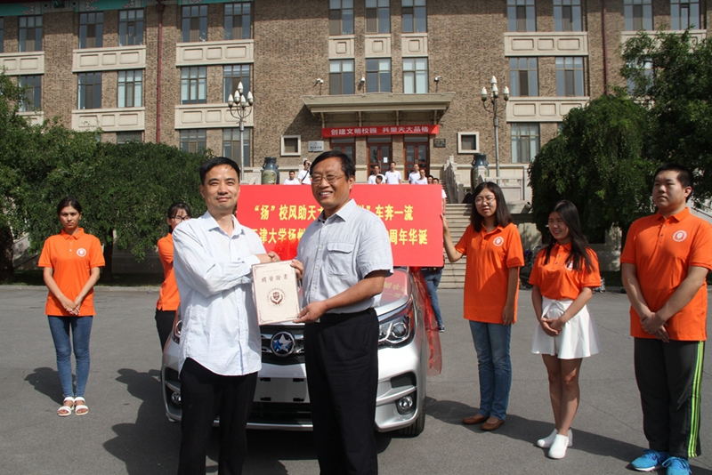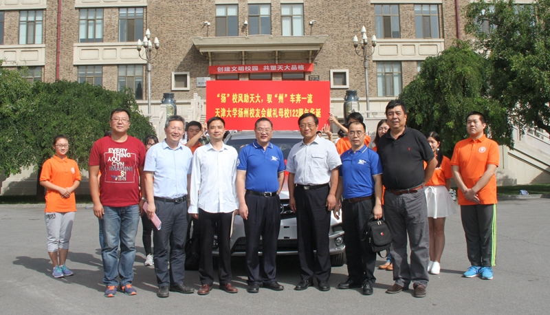 本站讯(通讯员 孙亮)9月23日,在天津大学122周年华诞即将到来之际,天津大学扬州校友会献礼母校华诞,捐赠东风启辰M50V轿车一辆,支持天津大学教育事业发展,用于校友接待服务工作。