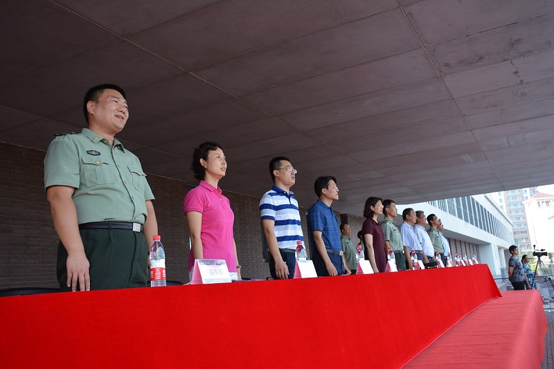 下午四点半,动员大会在雄壮的国歌声中拉开序幕。雷鸣代表学校党委和行政向承担本次训练任务的选培办全体官兵以及全体国防生教官同学们致以衷心的感谢,向参加本次军训的全体同学及暑假期间为全运会开幕式节目辛勤排演的同学们表示亲切的慰问。