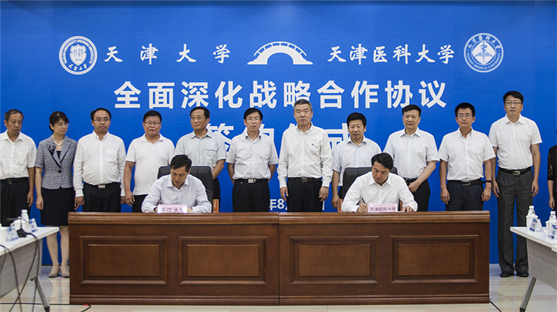 天津大学党委书记李家俊、天津医科大学党委书记姚智出席签约仪式并致辞,天津大学校长钟登华、天津医科大学校长颜华分别代表两校在合作协议书上签字。天津大学和天津医科大学的校领导班子成员、相关部处与学院负责人、师生代表等100余人参加了签约仪式。会议由天津大学副校长王树新主持。