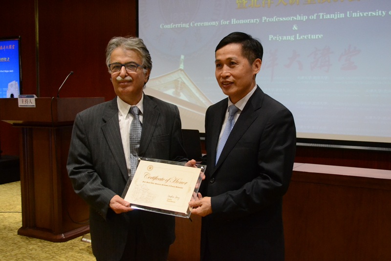 本站讯 (通讯员 赵远)8月17日,西班牙皇家工程院外籍院士、立陶宛科学院外籍院士、美国俄亥俄州立大学Hojjat Adeli教授受聘天津大学名誉教授授予仪式暨北洋大讲堂演讲会在北洋园校区杏荪楼A102报告厅举行。天津大学校长钟登华出席了授予仪式并为Hojjat Adeli教授颁发名誉教授证书。国际合作与交流处处长杨福玲主持了授予仪式。