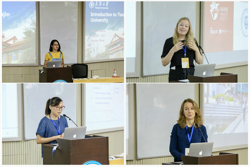 天津大学工业设计黄艳群副教授,代尔夫特理工大学学生Lynn Potters、教师Deborah Nas,依次上台,从学习环境、课程设置、师资情况、参会学生等方面介绍了自己学校及专业的情况。