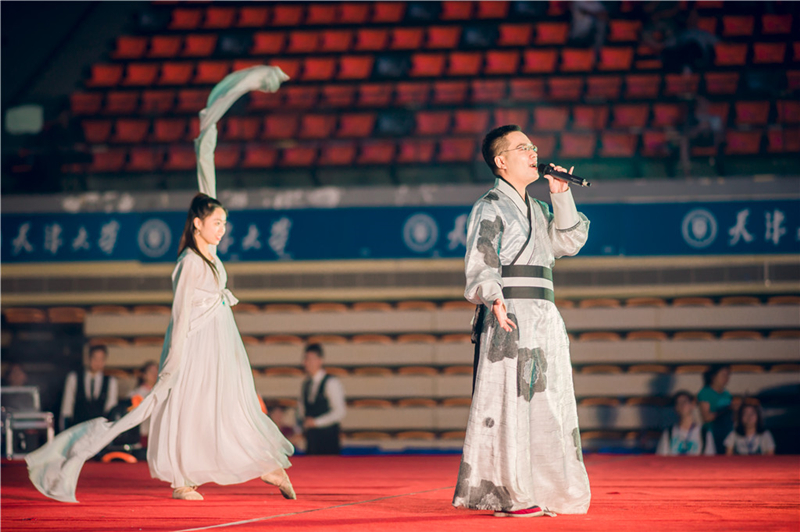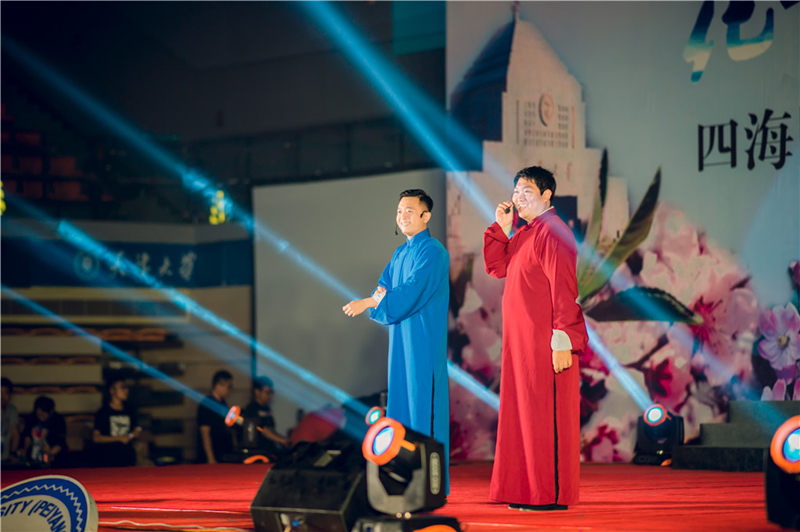 精仪学院辅导员郑喆老师和建筑学院辅导员张建斌老师带来的相声《礼仪漫谈》开启了第三篇章,以礼仪为主题,运用天津本土独特的语言艺术和极富感染力的表演,带给观众一阵又一阵的欢声笑语。2016级建筑学院研究生戚一帆和2016届理学院校友王健为大家演绎经典名曲《告别时刻》,渲染了淡淡的离别愁绪。歌曲串烧《不说再见》为晚会第三幕画上了圆满的句号。