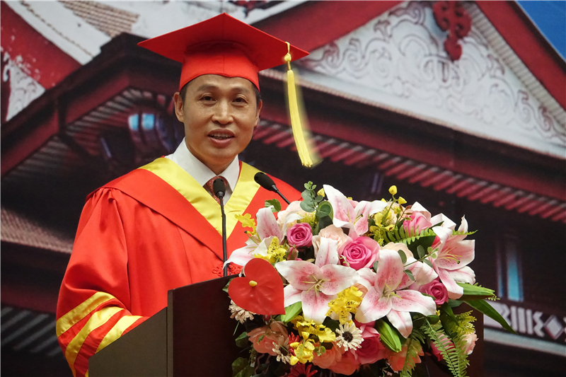 马克思主义学院教授孙兰英作为教师代表向学生们送上临别寄语。她希望毕业生们“守其初心,踏歌前行”。