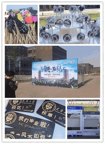 6月20日,毕业季活动于书田广场陆续开展,大批毕业生积极加入到活动中来,文明离校,传递正能量。在爱玛客物业(天津大学)项目部全力配合下,毕业生们将大学四年有意义、有价值的物品进行转赠,并领取母校特制的印有“天大logo”的棒棒糖。同时,母校为毕业生提供了形式新颖的“自拍框架”,让同学们在天津大学留下青春最美的剪影。