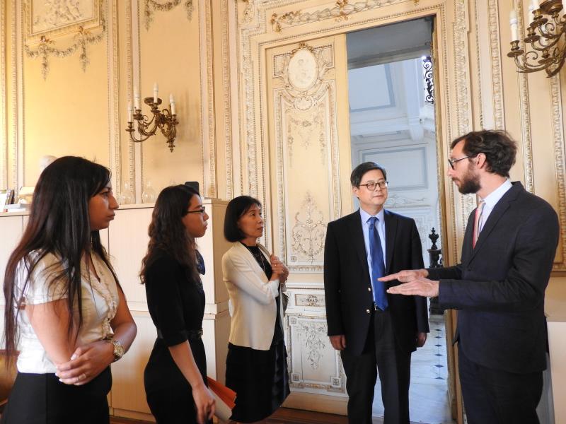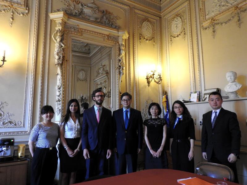 本站讯(通讯员 苏勃)2017年6月7日,中国驻法国使馆教育公参马燕生访问了法国蔚蓝海岸孔子学院,并同蔚蓝海岸孔子学院理事、尼斯大学副校长让-克里斯朵夫·马丁(Jean-Christophe Martin)及中法方院长等举行了座谈。使馆教育处三秘顾晋宇和张颖陪同访问。