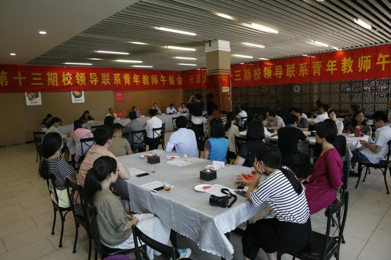 校领导联系青年教师午餐会由校工会和校青年教师联谊会共同创办,活动采取AA制,校领导和相关部门负责人借午餐和休息的机会与青年教师围绕学校事业发展重大问题及青年教师成长亟待解决的问题共同探讨。午餐会活动每季度举办一次,该项活动自13年11月以来已经成功举办12期,先后邀请多位校领导与青年教师探讨学校事业发展。本次午餐会通过校院两级青椒会、“天大青椒”微信和 QQ群等渠道征集青年教师的意见和建议36条,有效聚焦青年教师关切,搭建学校领导、相关部门负责人与广大青年教师的沟通主渠道。