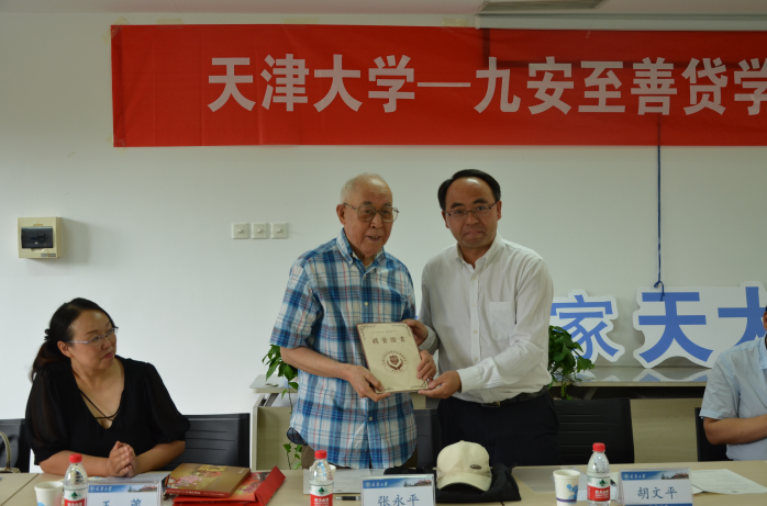 本站讯(通讯员 陶森)6月5日,九安至善贷学金学生座谈会在卫津路校区第九教学楼校友之家会议室举办。天津大学天津校友会会长、天津九安医疗电子股份有限公司董事长刘毅、天津大学天津校友会秘书长姚振国、天津大学天津校友会副秘书长董志国、天津大学天津校友会1962届建筑学院校友张永平、天津九安医疗电子股份有限公司行政人事经理翟新辉作为嘉宾参会。天津大学副校长胡文平出席会议并讲话,学工部、基金会、校友会等相关人员陪同参加。会议由校友与基金事务处处长潘峰主持。