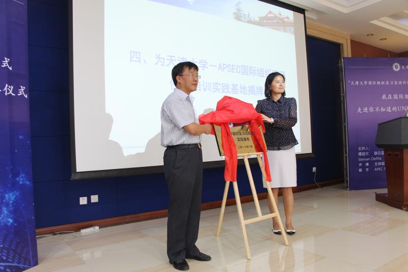 仪式中,张凤宝与原能源宪章秘书处主任Steivan Defilla为“天津大学国际组织实习实训计划”揭牌,并与APEC可持续能源中心主任朱丽为APSEC国际组织实习任职培训实践基地揭牌。建筑学院建院80周年院庆系列活动之“APSEC-VI设计创新大赛”也同时启动。