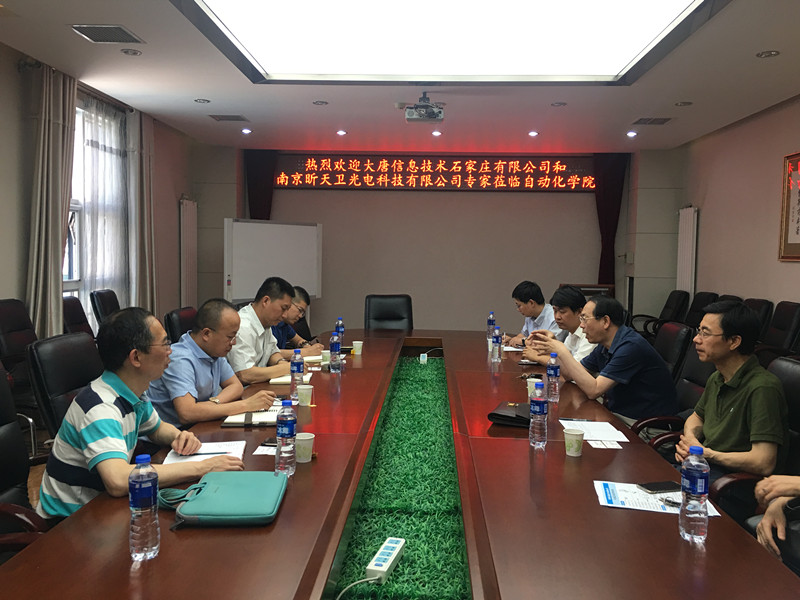 本站讯 (通讯员辛爽)5月31日上午,大唐信息技术石家庄有限公司和南京昕天卫光电科技有限公司一行来学院访问,交流科技合作事宜。大唐信息技术石家庄有限公司总经理张彬、副总经理冯玉虎,南京昕天卫光电科技有限公司总经理王绍俊校友,自动化学院院长王成山、副院长孟庆浩、学院校友会秘书长李昌青、院长助理李斌以及相关专业老师参加了交流。