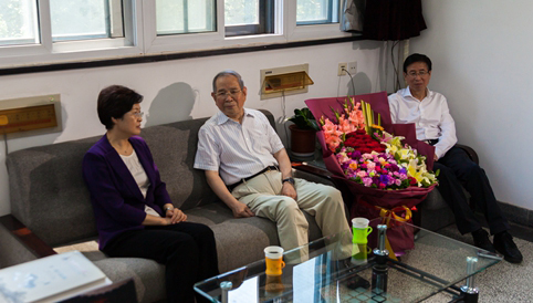 本站讯(记者 靳莹 摄影 丁宇) 5月30日是我国首个“全国科技工作者日”。5月27日,天津市委常委、市委教育工委书记程丽华亲切看望了中国工程院院士、天津大学教授叶声华。天津大学党委书记李家俊、校长钟登华,天津市科协相关负责人陪同看望。