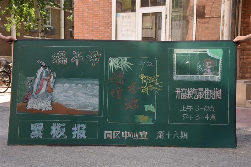 端午节快来了,学校正筹划在宿舍区举办宿管员与学生互动包粽子活动。“我们就想出一期与端午节、与家庭亲情相关的板报”。已“出品”的板报画中除了有身影潇洒的爱国诗人屈原,还有仿照版画画法画出的妈妈包粽子场景。“我们路过时抬头看看黑板画,就知道要过节了”,“看到画中的妈妈包粽子,心里暖暖的”,学生们说。将节日来历、传统习俗等通过线条与色彩形象勾勒,表达爱国爱家情怀,是“板报宣传三人组”大爷们的朴素心愿。(文靳莹 刘玉玮 图学工部)