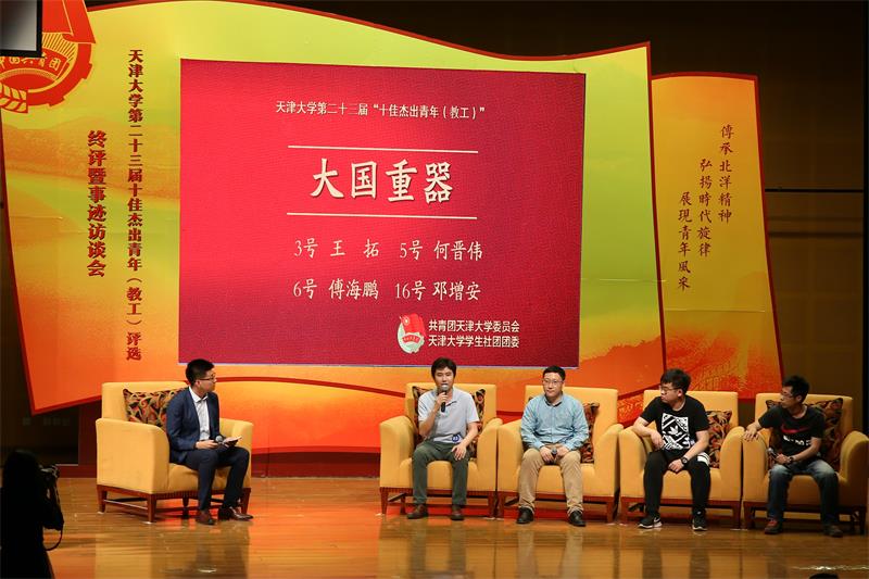 本站讯 2017年5月15日下午,由共青团天津大学委员会主办、天津大学学生社团团委承办的天津大学第二十三届“十佳杰出青年(教工)”评选终评暨事迹访谈会在大通学生活动中心A区报告厅举行。校长助理张力新出席了活动。各机关部处、各学院相关领导21人担任专家评委,纪娜、徐杰等10人当选为本届“十佳杰出青年(教工)”。