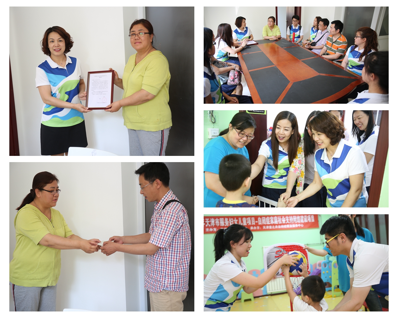 5月9日,沈彤园长带领幼儿园青年教师代表以及家长代表一行十余人再次来到天津童之舟自闭症康复服务中心,将义卖善款转交给了中心负责人。幼儿园的青年教师与中心的教师们相互交流,互补经验,还走进教室与小朋友一起游戏,共同度过了一段欢乐的时光。