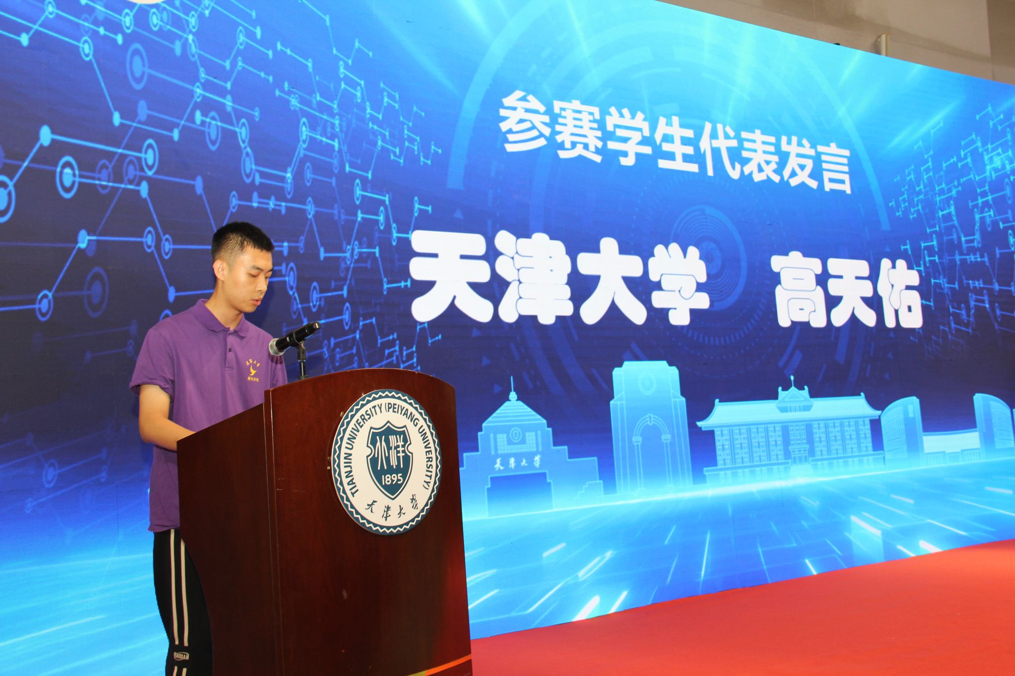 7月26日上午,大赛开幕式在天津大学卫津路校区隆重举行。天津大学精仪学院副院长王鹏教授主持开幕式,北京理工大学董毅教授致辞,天津大学党委副书记韩庆华教授致欢迎词。韩庆华教授勉励全体参赛学生弘扬科学精神,勇于创新创造,将所学知识转化为解决实际问题的能力,为推动光电技术发展和产业进步贡献力量;最后预祝各参赛队伍在比赛中充分展现才华,取得优异成绩。太原理工大学杨玲珍教授作为裁判专家代表发言,天津大学高天佑同学作为参赛学生代表发言。