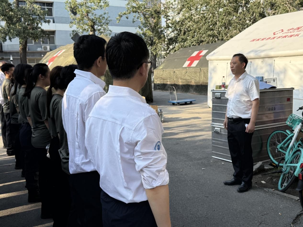 随后,天津二七二医院谢明院长发表讲话。他表示,此次培训演练意义重大、使命光荣,并向天津大学卫生应急学院表达了衷心的感谢,感谢其对天津二七二医院的信任和在前期进行的精心筹备。同时,他对参训队员提出了三点要求:一是要作风过硬,展示出良好的精神风貌;二是要真学真练,切实锻炼自身本领;三是要服从指挥,虚心学习。希望参训队员们能够珍惜此次培训机会,将所学知识和技能运用到实际救援工作中,不断提升救援队的整体战斗力。