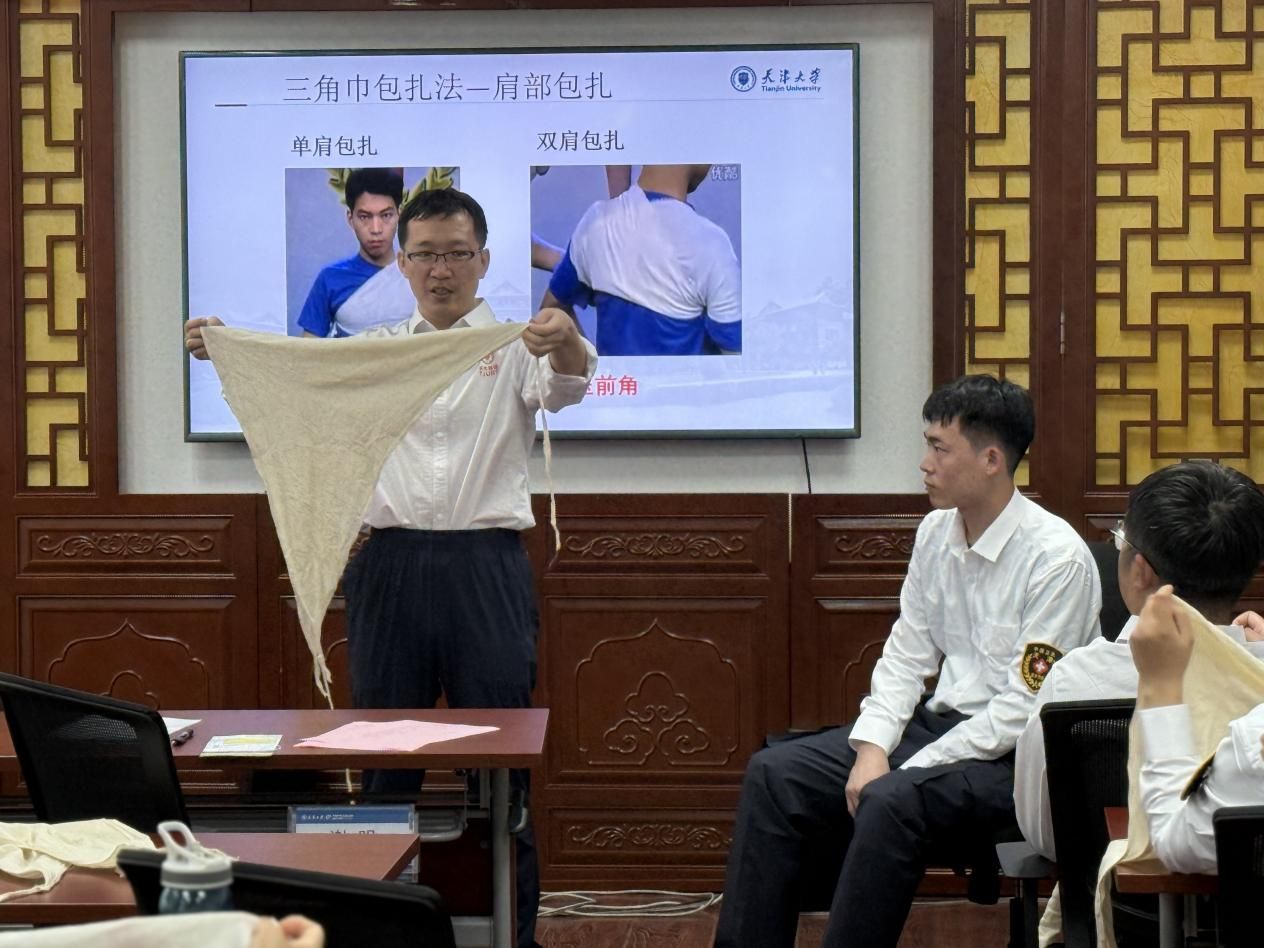 开班仪式结束后,紧张而有序的培训环节正式开始。此次培训由天津大学卫生应急学院精心策划和组织,内容丰富且针对性强,涵盖了医学救援响应与处置、灾难现场检伤分类技术、灾难现场创伤急救技术等多个关键领域。在培训过程中,授课专家们结合大量真实案例,通过理论讲解、现场演示、互动实操等多种方式,向队员们传授了紧急医学救援的核心知识和实用技能。队员们学习热情高涨,积极参与互动交流,认真掌握每一个操作要点,为后续的模拟演练打下了坚实的基础。
