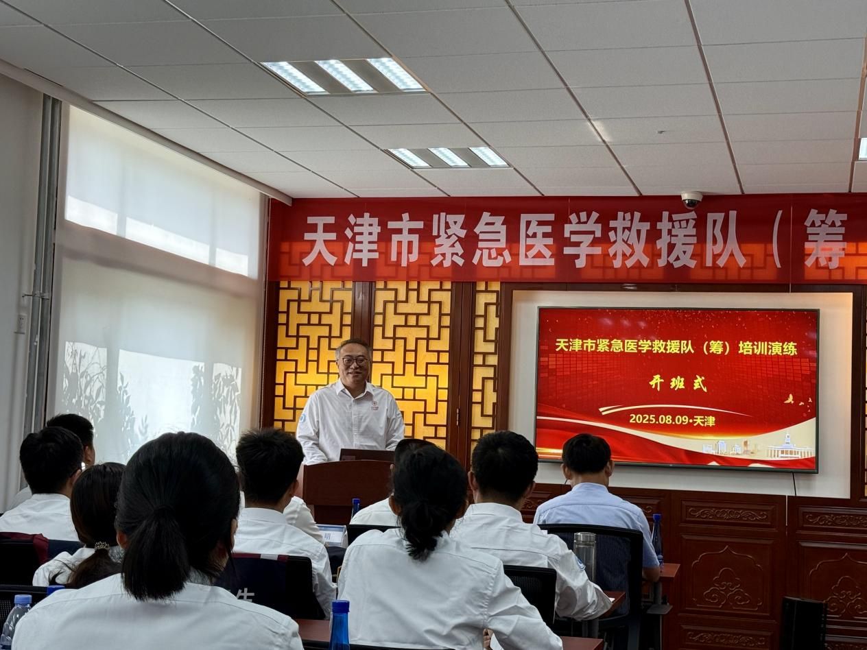开班仪式在天津大学医学部卫生应急学院隆重举行,天津二七二医院党委书记占荣华、院长谢明、医务处主任王振山,天津大学卫生应急学院党委书记庞博、应急医学研究院副院长范斌、院长助理董文龙出席了仪式。