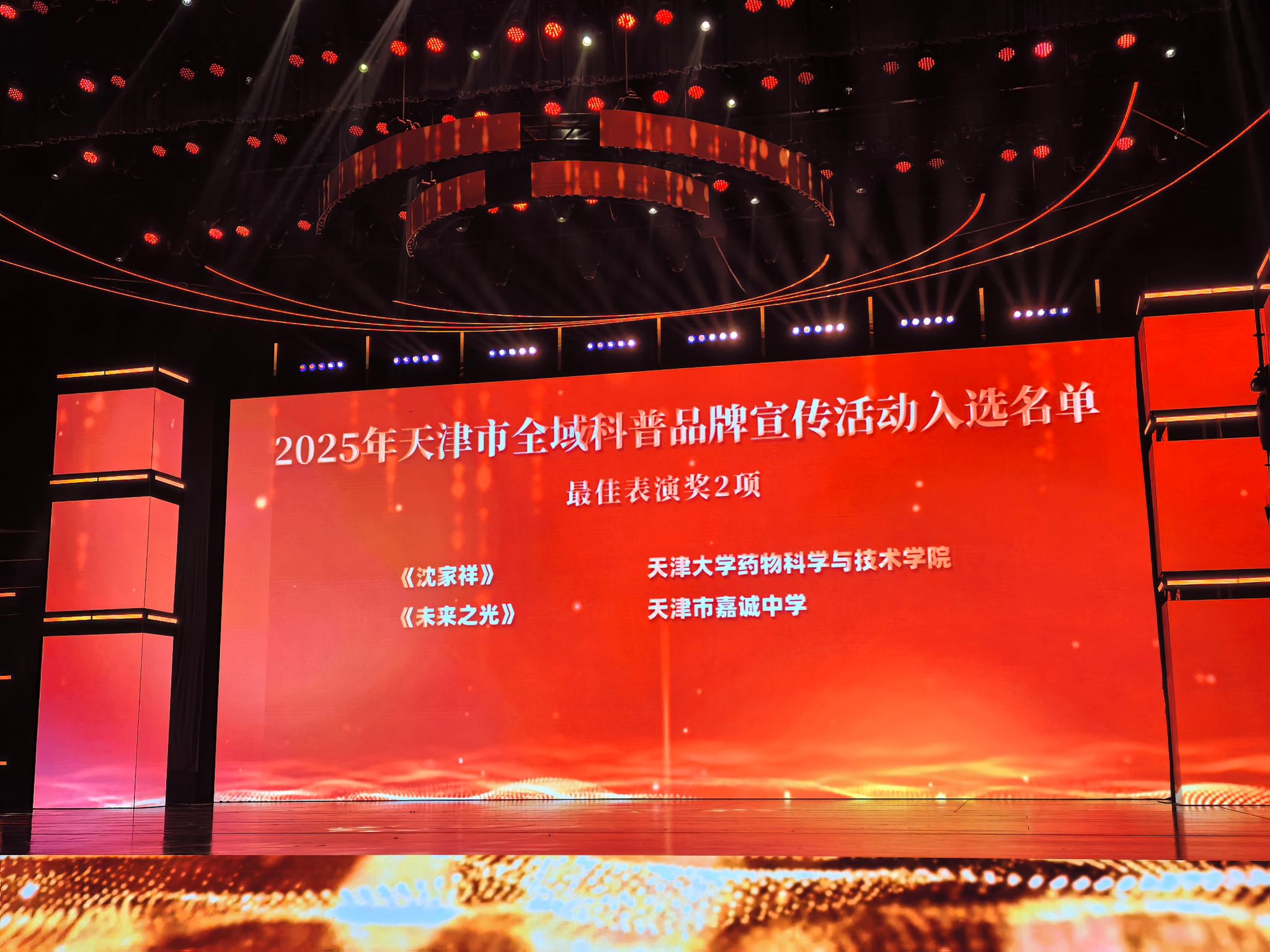 9月7日,2025年天津市全国科普月主场活动“天津科普之夜”隆重举行。天津大学医学部药学院与天津海河传媒中心合作,共同表演以我国现代医药工业奠基人、天津大学医学部药物科学与技术学院名誉院长沈家祥先生事迹为主题的科普话剧《为国制药——沈家祥》。