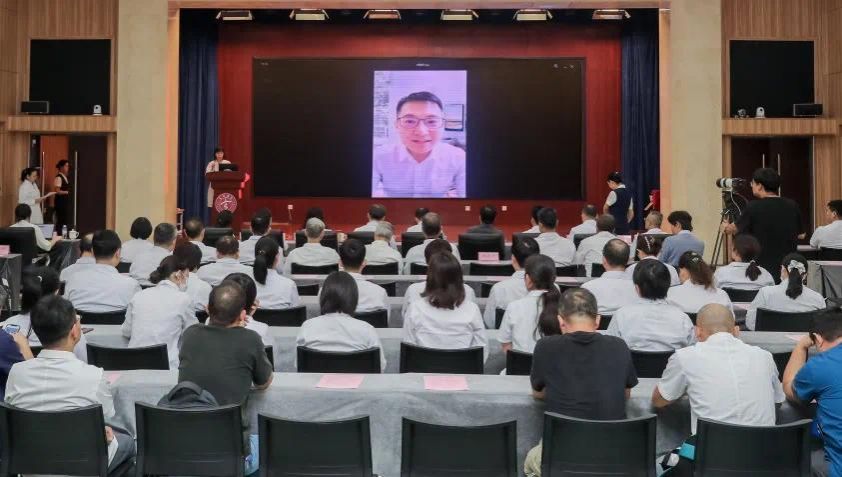 秋意渐浓,硕果盈枝。9月8日下午,以“教育家精神铸魂强师,谱写教育强国建设华章”为主题,天津大学天津医院(天津市天津医院)举办庆祝第41个教师节主题活动。天津大学副校长明东线上出席,天津医院党委书记徐卫国,党委副书记、院长陈彤,医院管理处处长倪广健,天津医院领导班子全体成员以及老教授老专家、教研室主任、优秀教师代表、学生代表等齐聚一堂,总结教育教学成果,表彰先进典型,展望未来发展。