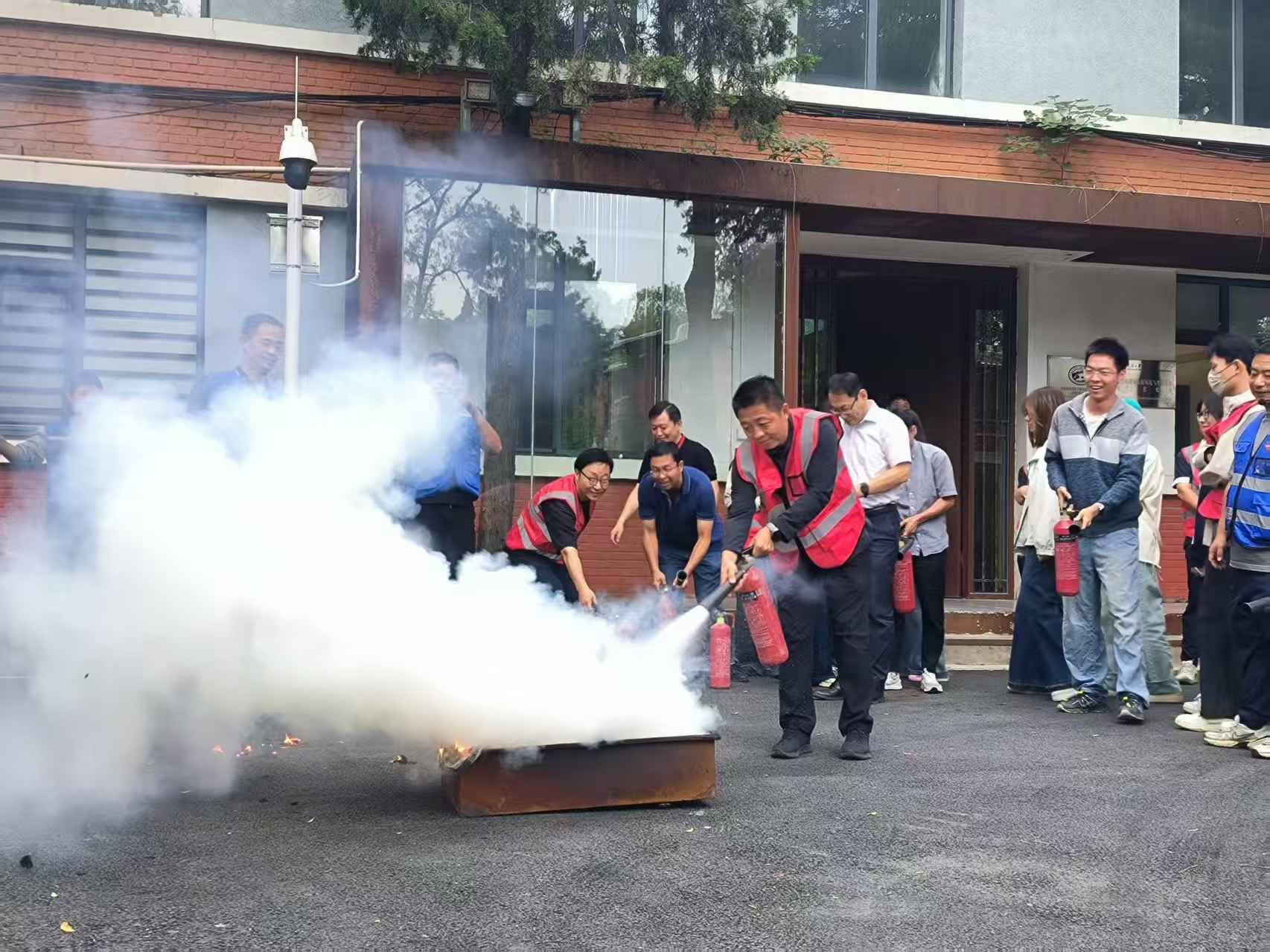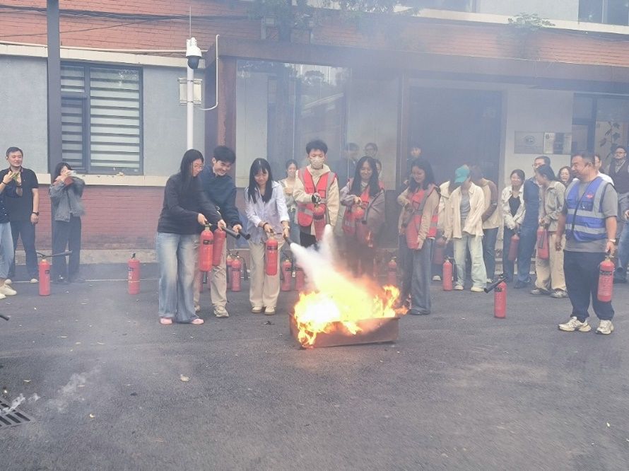 安全疏散演习结束后,组织了火灾扑救演练。工作人员现场详细讲解灭火器的使用方法、操作要领及注意事项,并进行现场演示;师生代表亲自上手操作,在工作人员的一对一指导下,成功将模拟火源扑灭。