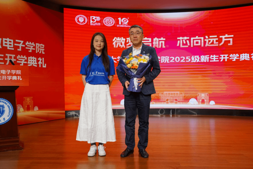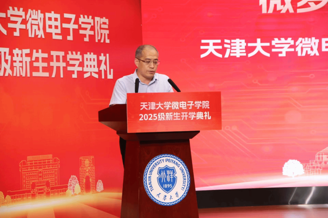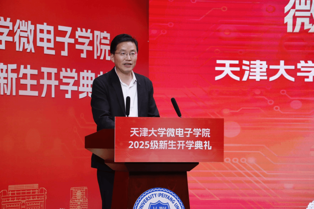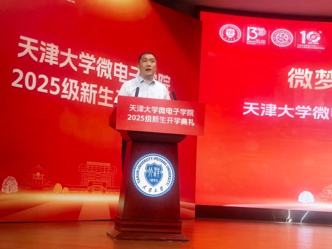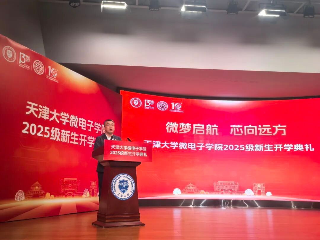 9月27日下午,天津大学微电子学院举行2025级新生开学典礼。华为半导体业务领域质量和运营部部长、学院1994级杰出校友崔靖杰,院长马凯学,党委书记贾果欣,副院长马永涛、李卓,天津大学国际教育学院院长、微电子学院教授李锵,党委委员、国家级领军人才、教授徐江涛,研究生导师代表、本科班主任和师友导师代表、辅导员等出席典礼。典礼由微电子学院党委副书记韩旭主持。