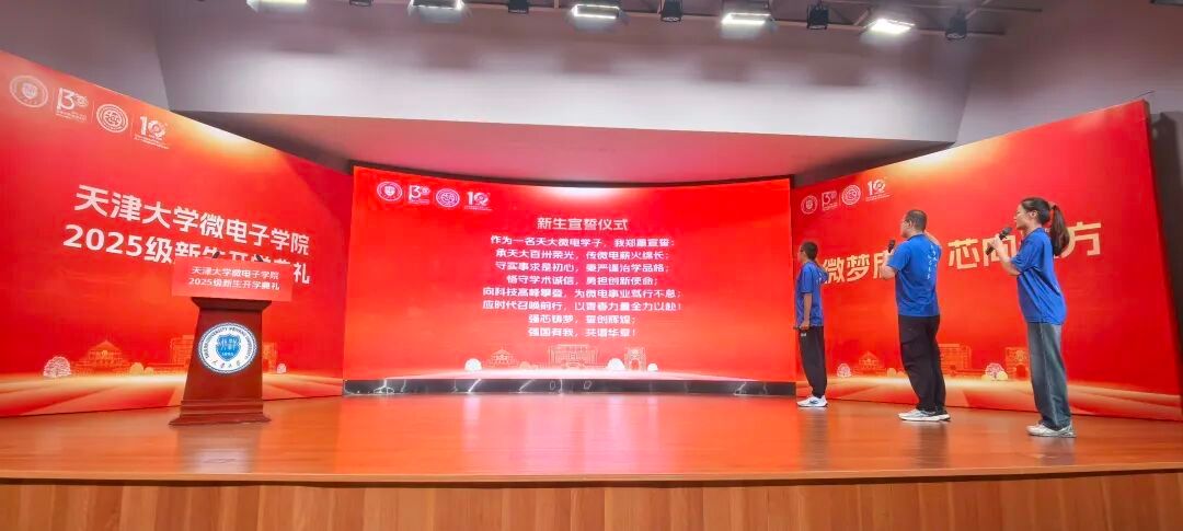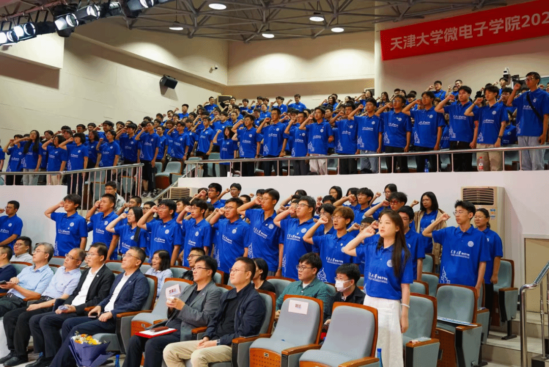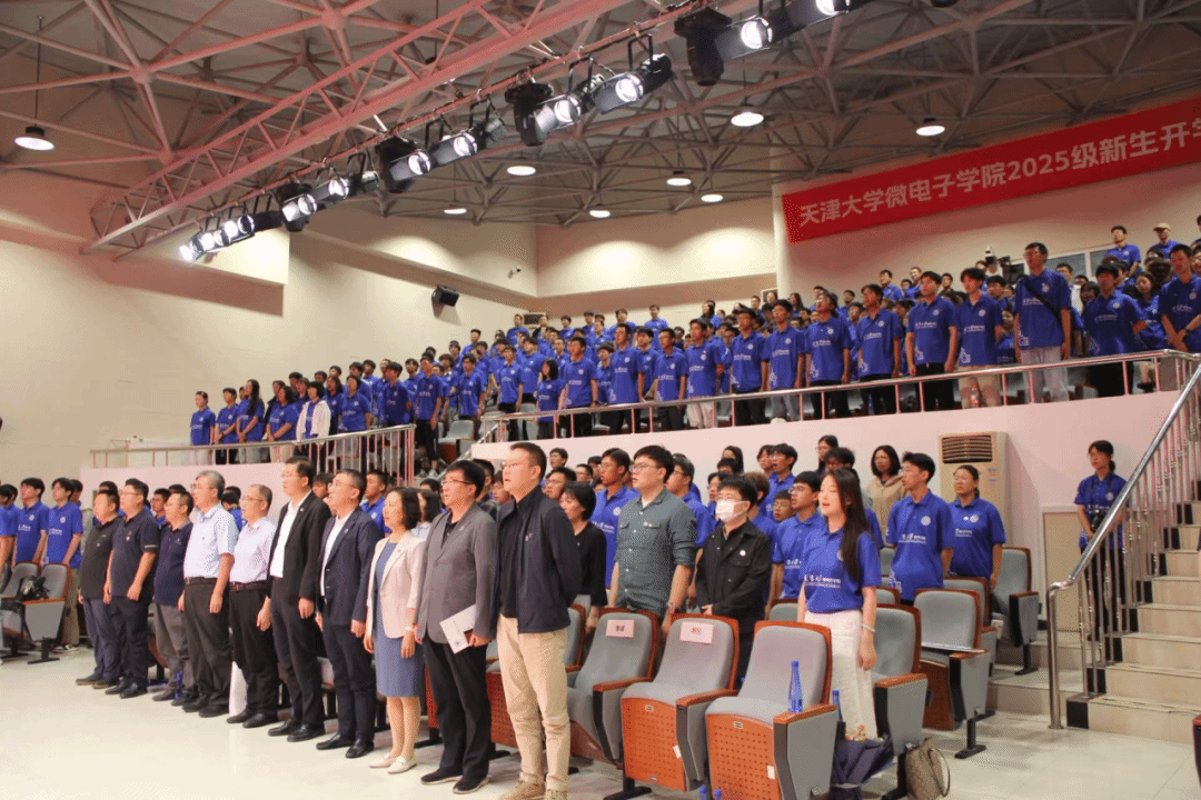 最后,全体师生齐唱校歌,2025级微电子学院新生开学典礼圆满结束。新学期新征程,2025级新生将在天津大学微电子学院的培养下,承天大志,立天大事,努力成为具有家国情怀、全球视野、创新精神和实践能力的新时代卓越集成电路领军人才,为早日实现中国梦贡献天大微电力量。