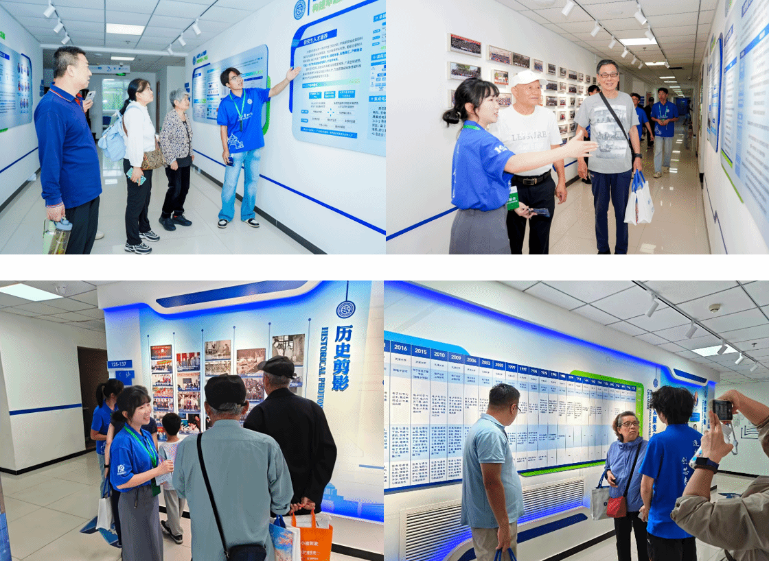 10月2日,微电子院史馆安排多场定时讲解活动。学生讲解员凭借专业的素养、饱满的热情,引领校友们穿梭于往昔与当下。从1933年北洋大学电机工程学系肇建,到今日微电子学院蓬勃发展,院史馆内一张张历史的照片、一个个动人的故事,清晰地勾勒出学科脉络演变与科研攀峰历史。位于学院主楼一层的科研成果展厅,成为了校友们流连忘返的核心展区。一批代表国际前沿和国内领先的科研项目与创新成果在此集中亮相,展现了微电子学院近十年来在关键领域取得的突破性进展与厚积薄发的“硬核”实力。这不仅是一场成果汇报,更是一封通向未来的宣言,令在场校友倍感自豪。学院主楼二层院史馆陈列着学院近年来在学科建设、师资队伍、教学科研等方面的成果,引得校友们不时交流探讨。而在“毕业合影”展板,校友们分享着彼此的成长经历与收获。校友们在此凝神驻足,这些定格的瞬间,深情地讲述着学院与一代代校友风雨同舟、共同成长的峥嵘岁月。