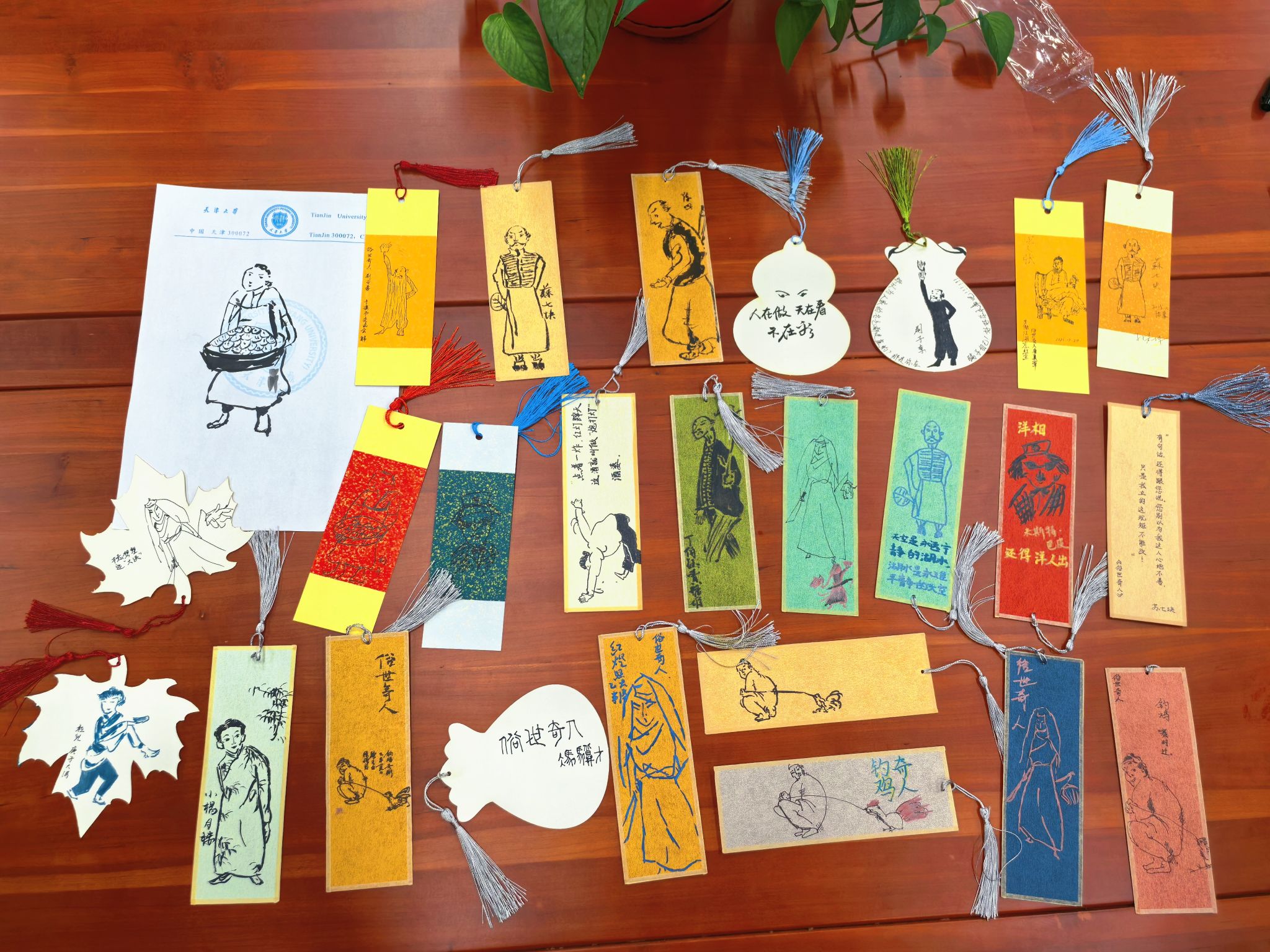 在书香浸润与思想碰撞之后,活动进入了充满巧思与趣味的“手绘奇人”创作环节。大家围坐一堂,在交流阅读感悟的同时,纷纷执起画笔,在特制的书签上仿照书中的插画风格自由创作,用心勾勒自己心中“刷子李”“泥人张”等角色的神韵。书香与墨韵在此交织,阅读与创作于此碰撞,一扇通往天津卫市井江湖的传奇之门,也由此向师生们敞开。