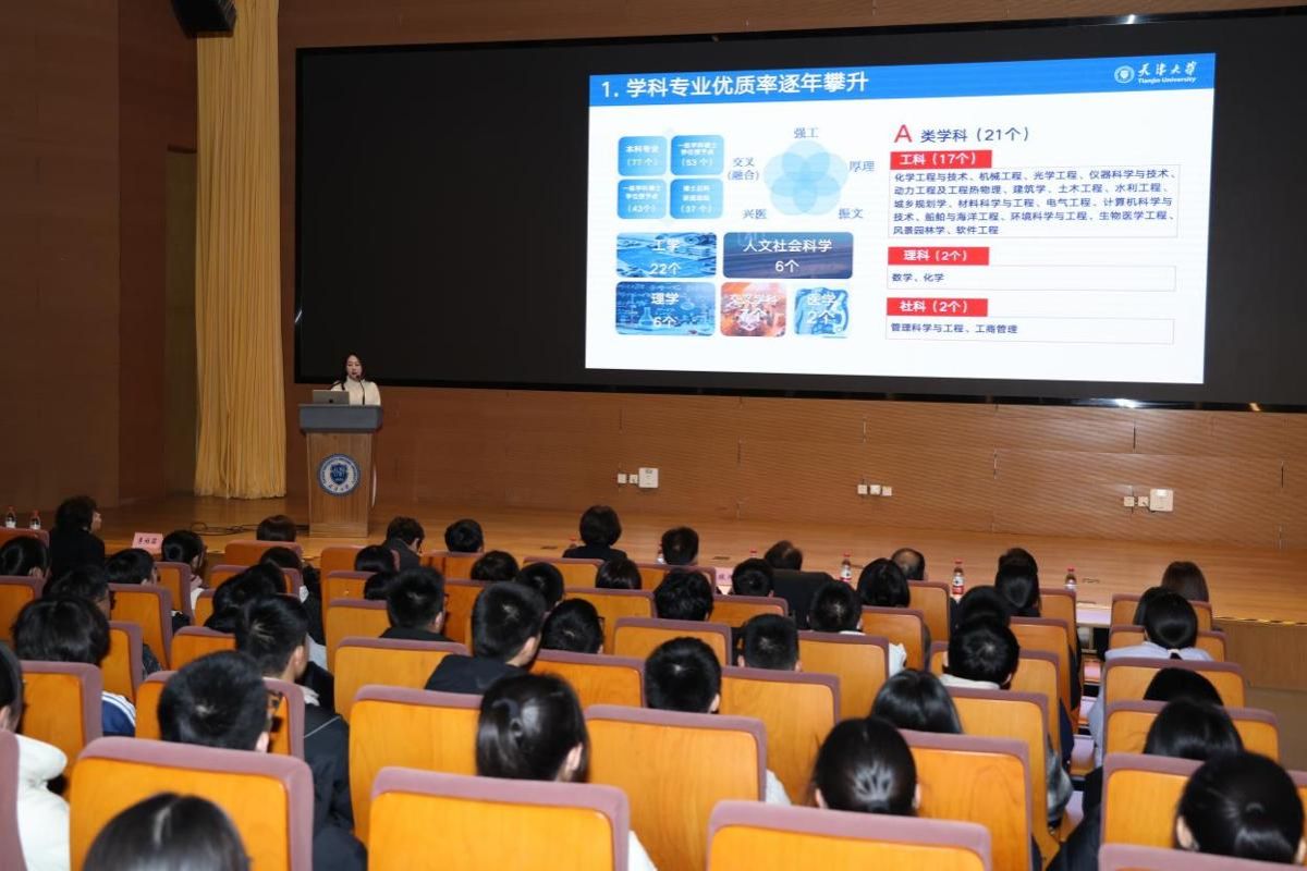 天津大学招生办公室李星竹老师为在场师生带来精彩的招生政策宣讲,详细介绍了天大的办学特色、专业设置与招生政策,助力高中学子明晰升学路径、树立奋斗目标。