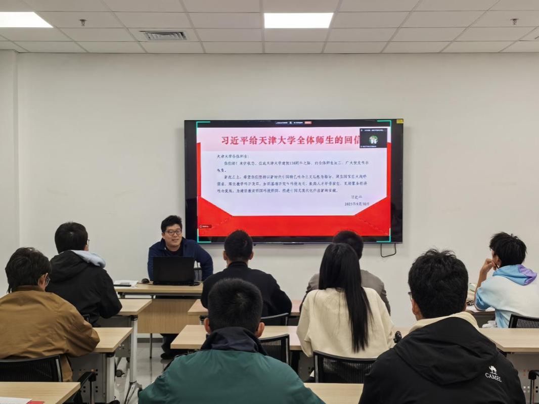 第二课以 “时代与青年的双向奔赴” 为核心脉络,由微电子学院团委副书记尹明老师主讲。他首先带领学员回顾党的十八大以来新时代十年的三大历史性胜利,结合共青团成立百年的奋斗历程,基于“国家的希望在青年,民族的未来在青年” 的时代定位,并抛出 “新时代青年如何在国家发展中锚定价值、展现作为” 的核心命题。授课过程中,尹明老师通过讲解陈延年坚守 “六不” 原则、张太雷践行革命誓言等先辈事迹,分享天津大学 “海燕” 团队突破科研纪录等当代青年故事,以榜样力量生动诠释不同时代青年 “敢担当、能吃苦、肯奋斗” 的精神共性。最后,他呼应习近平总书记对青年的殷切嘱托,号召学员将个人理想融入强国建设伟业,在实践中释放青春能量。