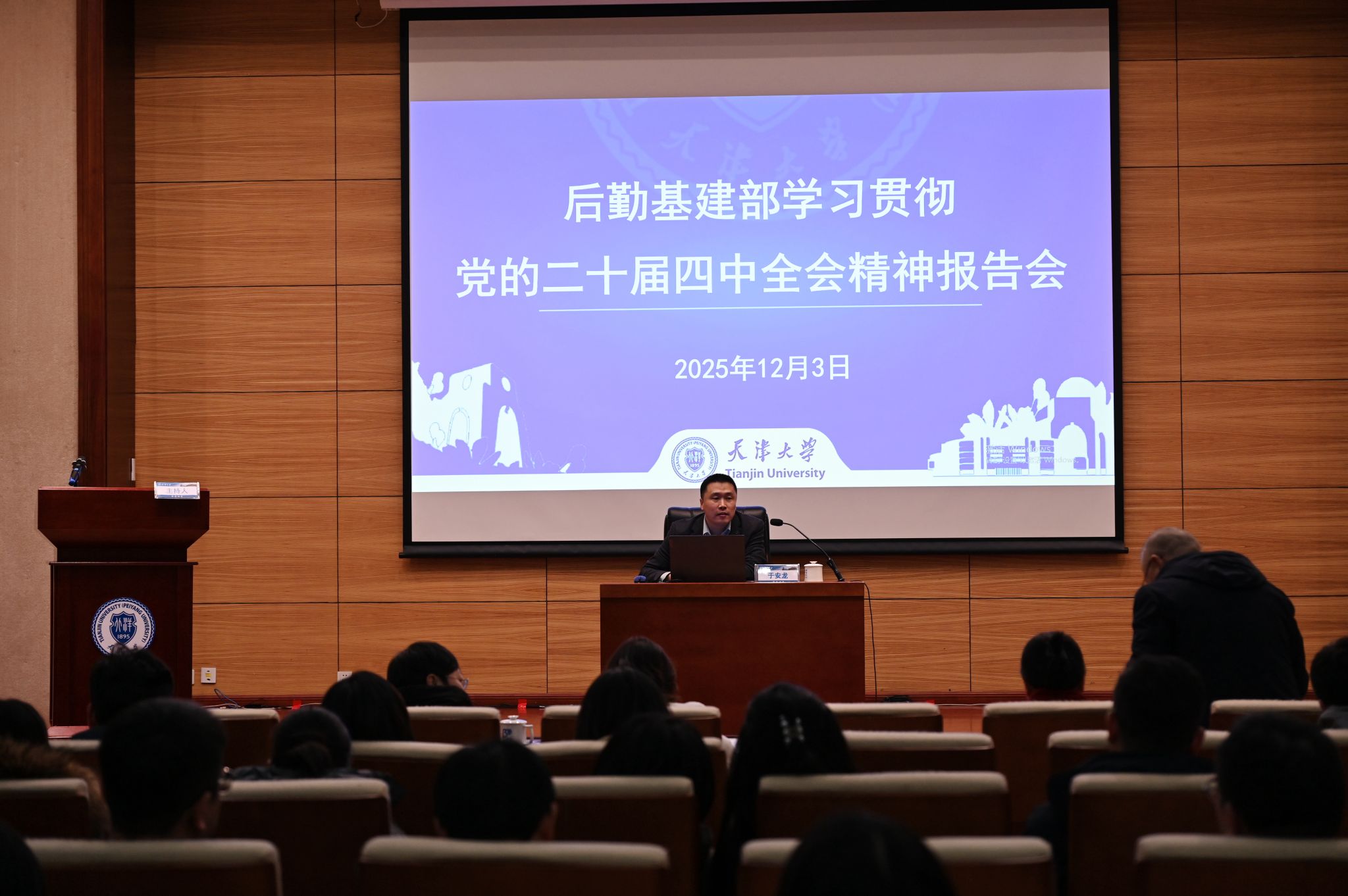 本站讯 为深入学习领会党的二十届四中全会精神,准确把握 “十五五” 规划的核心要义与实践要求,切实将思想和行动统一到党中央决策部署及学校工作要求上来,12 月 3 日下午,后勤基建部在卫津路校区科图二层报告厅举办专题报告会。本次报告会特邀天津大学马克思主义学院教授、博士生导师于安龙主讲,后勤基建部领导班子、全体党员、教职工及三方员工代表参加,报告会由后勤基建部书记汪菲主持。