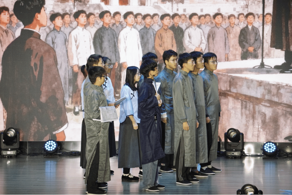 伴随着 i 唱音乐社同学深情演唱的《如愿》,决赛正式拉开帷幕。10 支参赛队伍以“时间线”为轴,围绕“星火破晓・北洋肇基”“知行合一・北洋兴邦”“融合创新・开创未来”三个章节展开演绎。