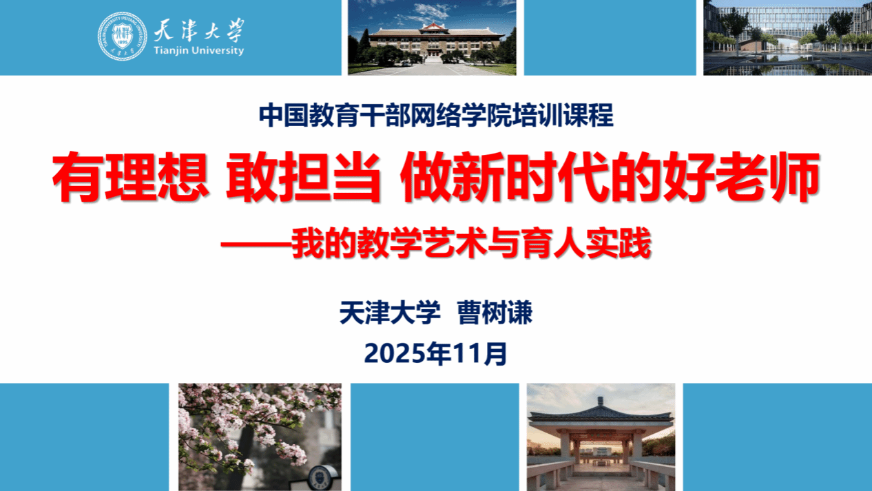 近日,天津大学机械工程学院曹树谦教授受邀在中国教育干部网络学院推出专题课程《有理想 敢担当 做新时代的好老师——我的教学艺术与育人实践》。该课程系统阐述了其在近四十年教学生涯中形成的育人理念与课程思政实践体系,为高校教师提升育人能力、深化教学改革提供了具有操作性的示范与参考。