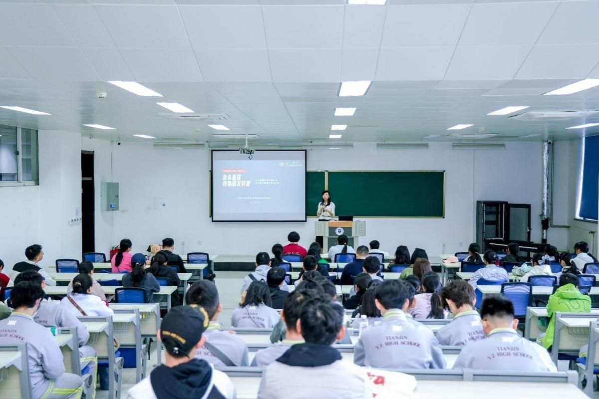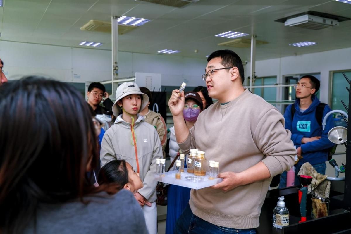 天津大学药学实验教学中心对游客开放。张鲲老师介绍中心情况并讲解实验室的安全设施与实验环境;李振莉老师带大家走进微观世界,讲述科学家借助显微镜发现幽门螺杆菌的故事;汪以馼老师展示模式生物果蝇,让同学们直观观察到生物性状差异,了解其在药物研发中的作用。