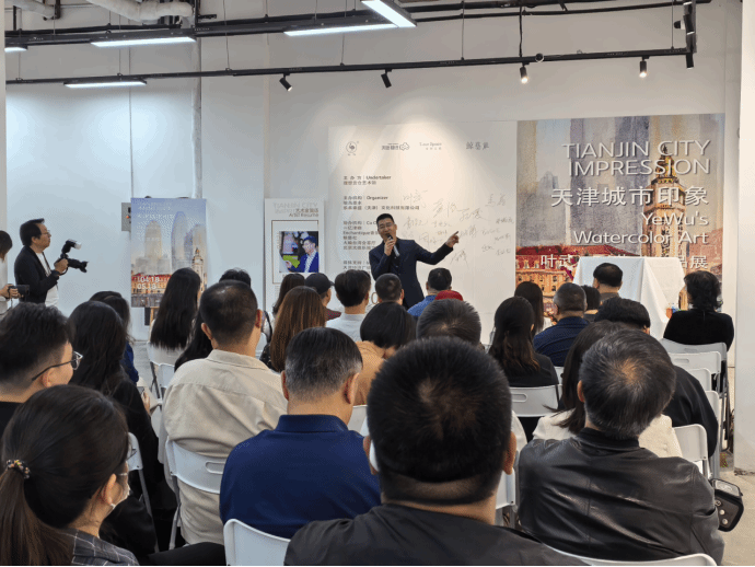 叶武用笔用色舒展畅达,于大气中见雅致,在典雅中蕴文心,体现出极佳的美学意蕴和汇通中西的水彩之美。来观展的侨胞说:“我们深爱着这片生活成长的地方,本次活动以画为媒、以史为鉴、以文润城,以画展促进文化交流与融合,用水彩画画好新天津,讲好天津发展故事。”