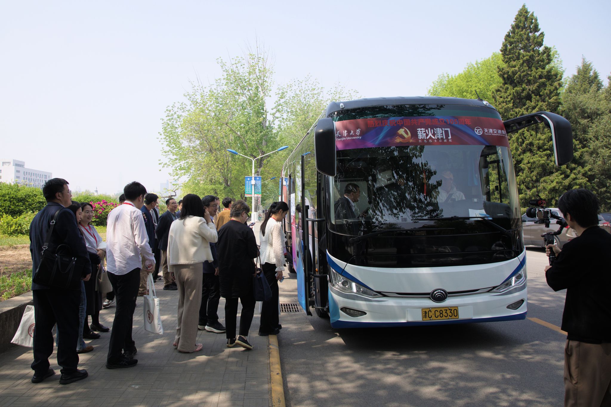 2026年4月18日,在“传承红色基因·培育时代新人——高校红色文化传承与发展实践研讨会”期间,一辆满载红色记忆的巴士从天津大学卫津路校区缓缓驶出,穿行于津门百年历史街区。这是由天津大学人文艺术学院与天津市交通集团深度合作打造的“薪火津门105·红色巴士启新程”项目的首次试行活动,为庆祝中国共产党成立105周年献上了一份流动的红色文化厚礼。