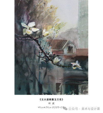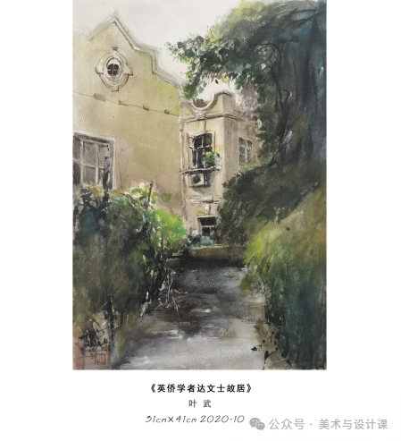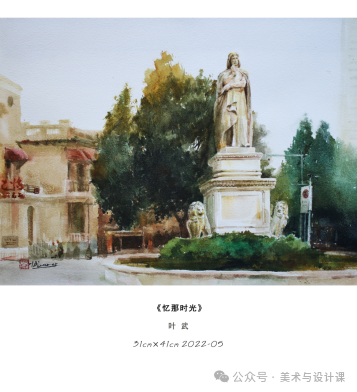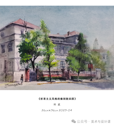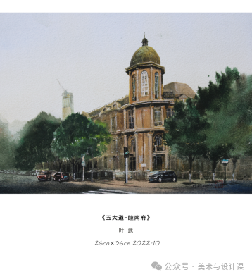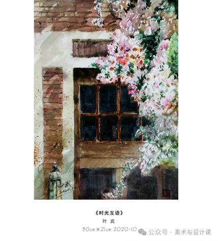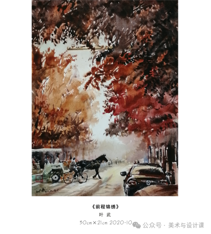 叶武老师水彩笔下的五大道各纵横交错的街巷,积淀着多彩历史风情,行人、车辆在花影中穿行,留下一道道流动的光影,那是岁月沉淀下的优雅,是自然与人文交融的美好。