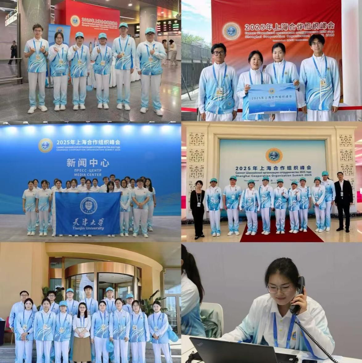 看!青春身影闪耀盛会!天津大学外国语学院师生积极投身于上海合作组织峰会的服务工作,凭借深厚的语言功底、扎实的专业知识以及丰富的跨文化交际能力,以专业素养为基石,搭建起一个与世界对话的广阔平台,促进不同文化背景下的思想碰撞与交流融合,为推动上海合作组织在政治、经济、文化等多领域的合作与发展贡献着智慧与力量。外国语学院师生志愿者默默耕耘、无私奉献,他们的青春光芒在上海合作组织峰会的舞台上熠熠生辉,向世界递出了闪耀着青春活力的“中国名片”“天津名片”“天大外语人名片”!