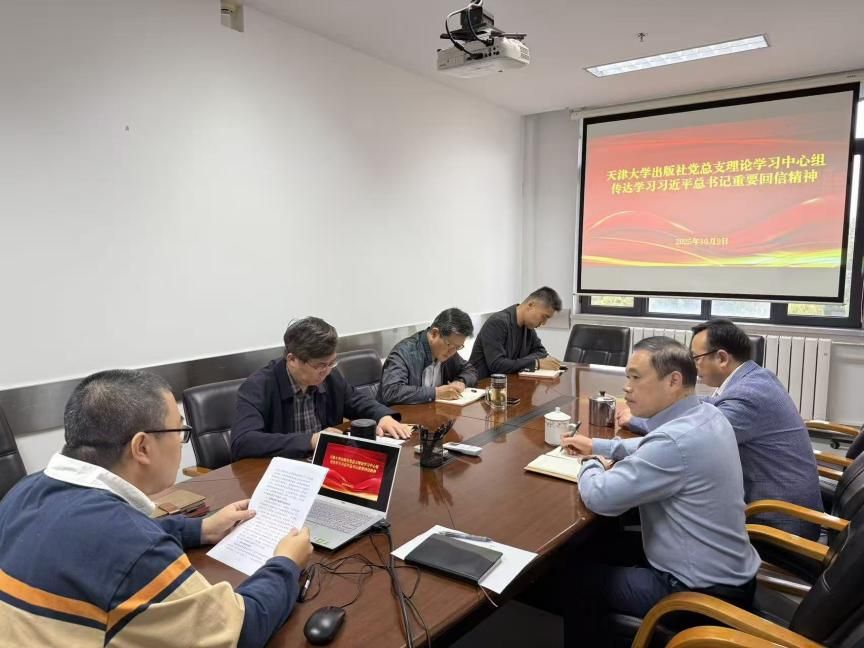 2025年10月9日上午,天津大学出版社党总支理论学习中心组在出版社406会议室召开专题会议,深入学习习近平总书记给天津大学全体师生重要回信精神。会议由党总支书记宋昆主持。