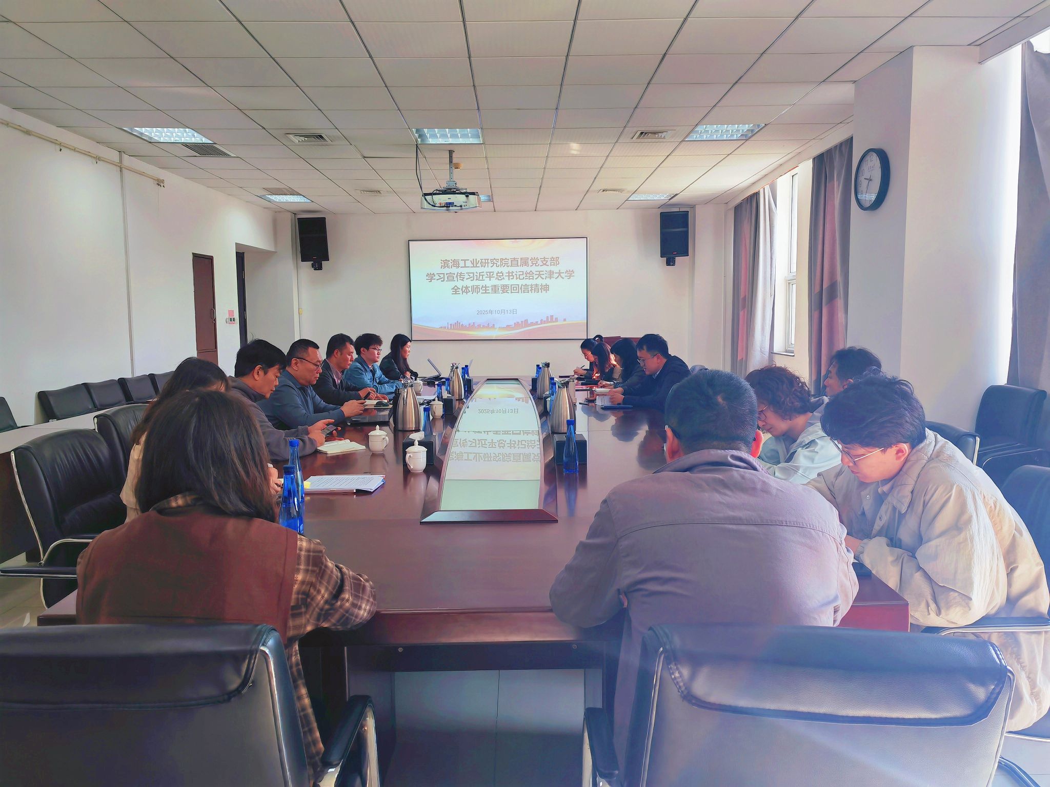本站讯 为深入学习领会、全面贯彻落实习近平总书记给天津大学全体师生重要回信精神,滨海工业研究院直属党支部召开专题会议,进行集体学习研讨。会议由直属党支部书记张宇主持。