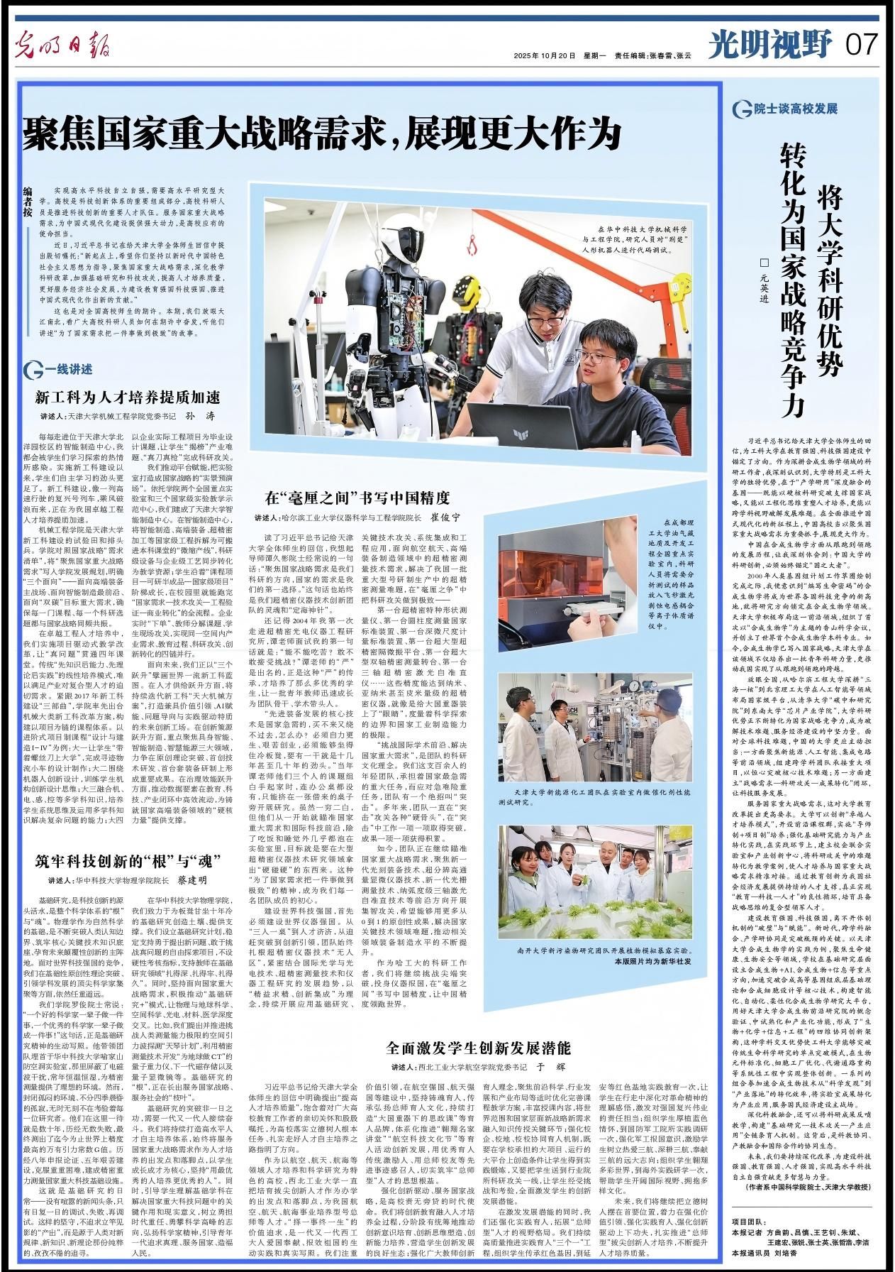 这也是对全国高校师生的期许。本期,我们放眼大江南北,看广大高校科研人员如何在期许中奋发,听他们讲述“为了国家需求把一件事做到极致”的故事。