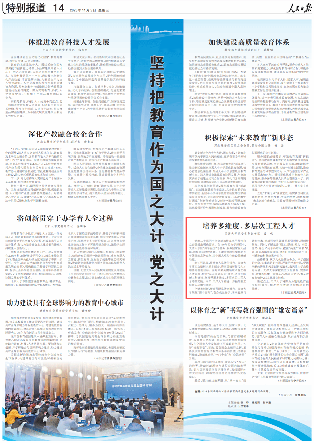 新工科筑基,提升育人品牌引领力。天津大学落实立德树人根本任务,将家国情怀作为人才培养的首要目标。面对未来关键领域卓越工程人才需求,树立“从未来到未来”理念,迭代升级新工科建设,坚持开展多维度、多层次的工程人才培养实践。今年,天津大学将进一步提升新工科育人品牌引领力。