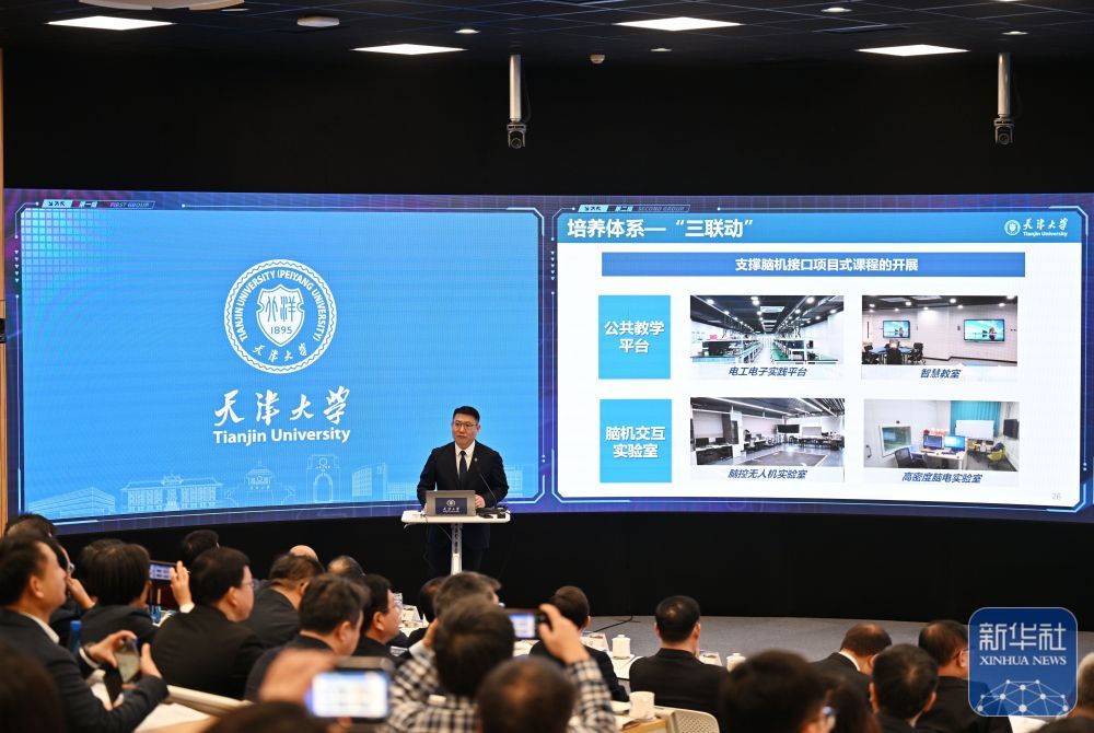 ↑ 12月31日,天津大学副校长、脑机接口方向负责人明东在会上发言。