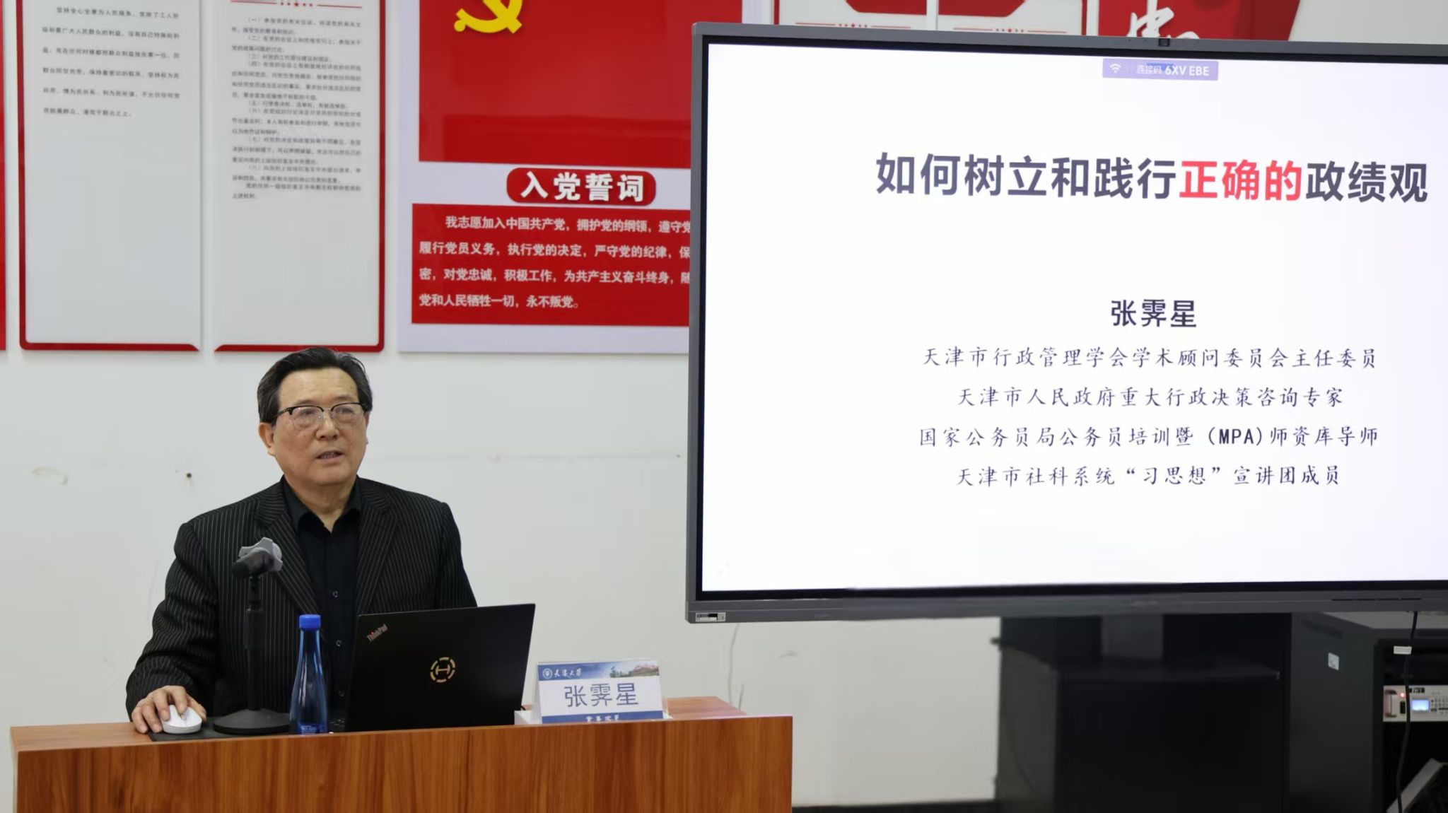 为深入学习习近平总书记关于树立和践行正确政绩观的重要论述,引导广大党员干部教师深刻理解、准确把握并自觉践行正确政绩观,4月3日,体育部党总支在卫津路校区A204党员活动室室举办学习教育专题辅导报告会。会议邀请天津市公务员能力建设中心原主任,天津市行政管理学会学术顾问委员会主任委员张霁星作题为《如何树立和践行正确的政绩观》辅导报告,体育部、场馆中心全体党员参加会议,报告由体育部党总支书记、主任李磊主持。